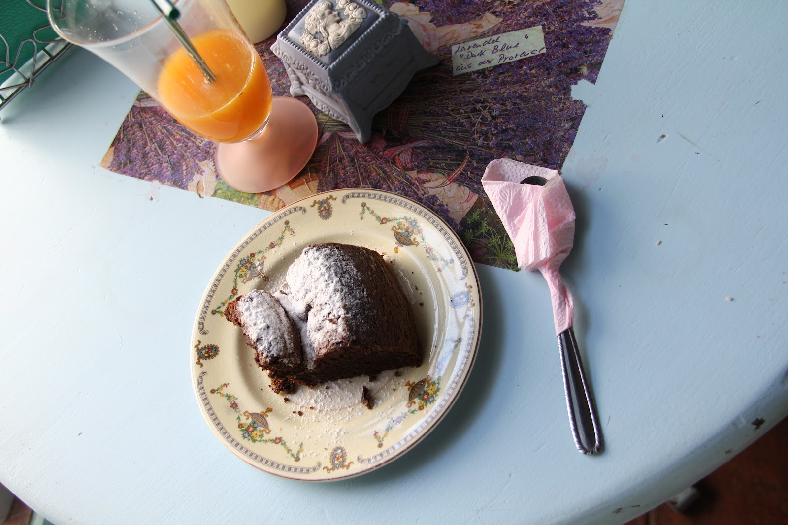 A segunda coisa foi a comida, que estava ótima (com exceção de uma torta de limão que meu namorado experimentou e não aprovou!), fizemos apenas um brunch por lá, mas também há pratos para almoçar ou jantar, há sanduiches, empanadas, bolos e outras sobremesas. Pedimos uma salada de rúcula e mini empanadas de presunto e queijo e suco de laranja, de sobremesa, eu comi um bolo de chocolate muitíssimo saboroso, um dos melhores que já experimentei, bom demais, dá água na boca só de lembrar … hehe