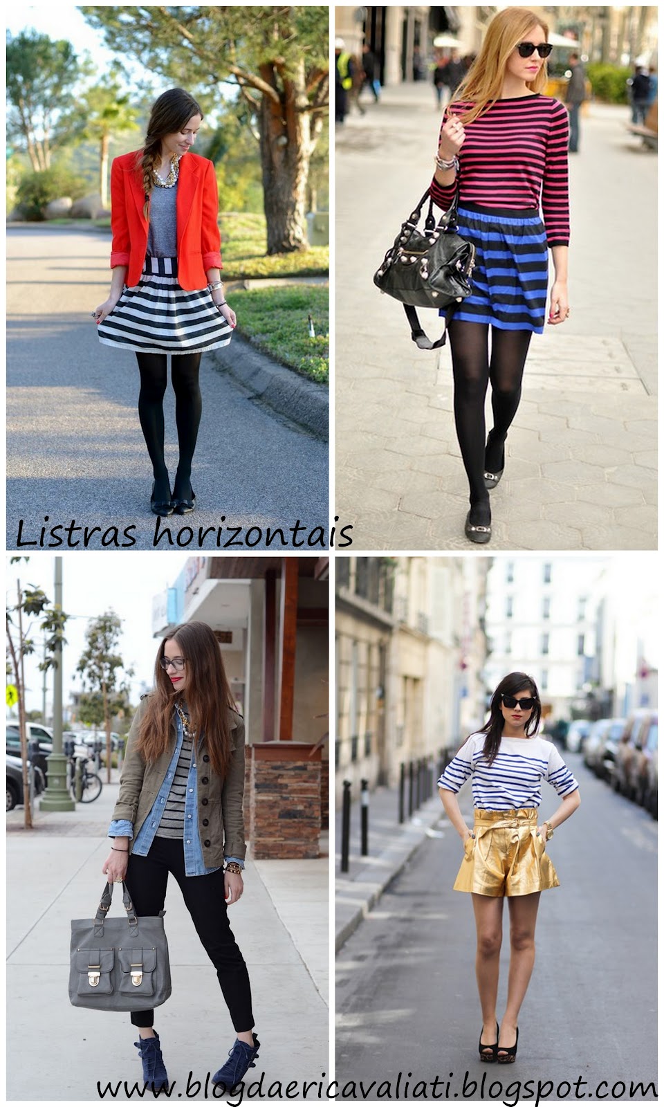 Mas as listras são sempre um dilema né? Na vertical alonga a silhueta (e nos dá a impressão de ótica de que estamos afinando) e na horizontal aumenta as proporções (ou ilusão de volume, podendo parecer que engordamos). E aí, o que vocês acham?