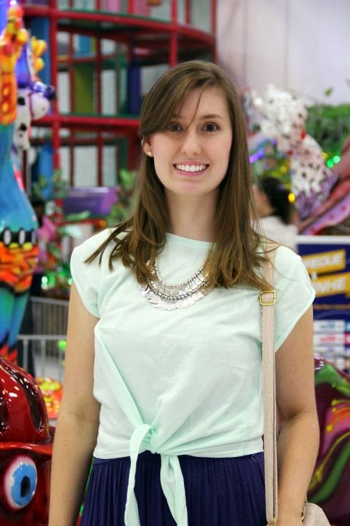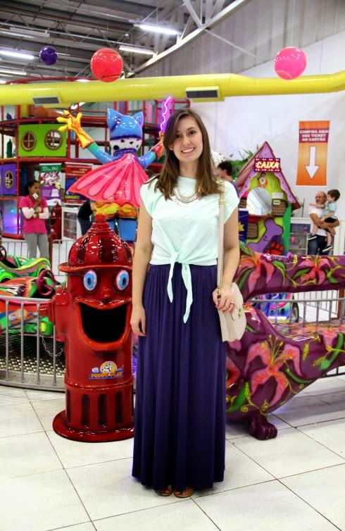 Como era um dia meio friozinho optei por algo longo, este vestido acabou virando uma saia, e usei com esta blusa de nózinho bem fofa e um colar super gypsy de moedas.