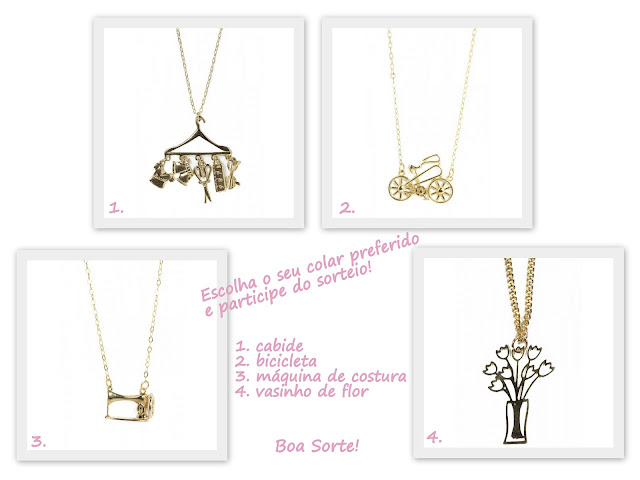 O prêmio será um dos colares abaixo, e a ganhadora poderá escolher qual ela quer receber (no formulário tem essa pergunta, e é só optar por qual você prefere!), super democrático né?! E os modelos são apaixonantes, confiram!