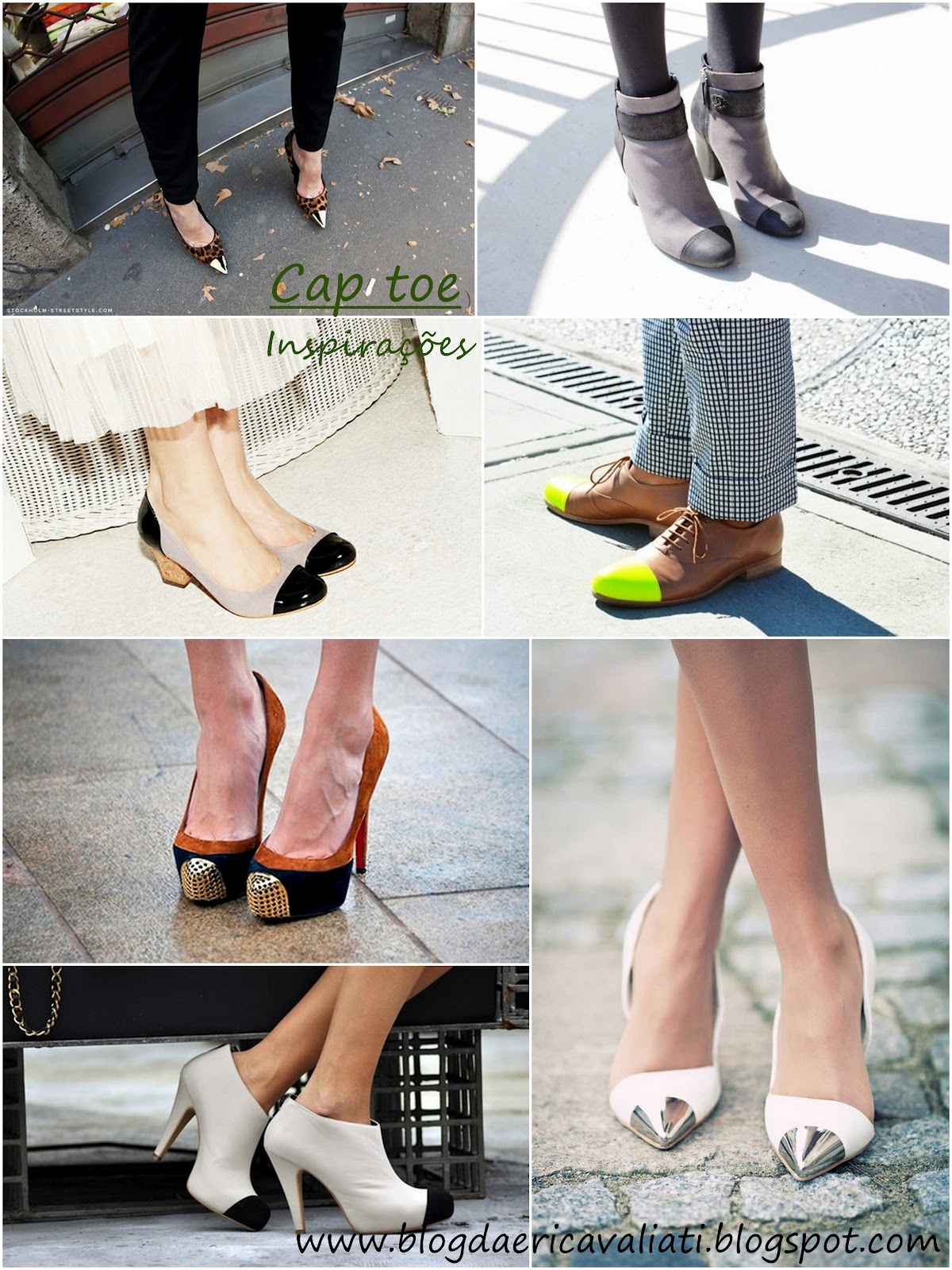 Os lindos modelos de sapatos chamados Cap toe, aquele que tem a pontinha de cor (e as vezes o material também) diferente do resto do calçado já existe há muito tempo, surgiu na década de 50, e foi criado por Coco Chanel. Ah, e o nome cap toe, é devido a essa “capinha” da ponta.